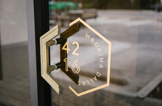 香港精致的玻璃門推手與標識的結合創意。